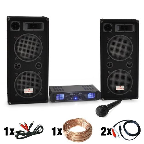 Évaluation de produit Set Sono DJ-26 - Pack de sonorisation complet - Ampli Enceintes et Micro (2000 W de puissance, câblage fourni) - Noir - voir les détails :